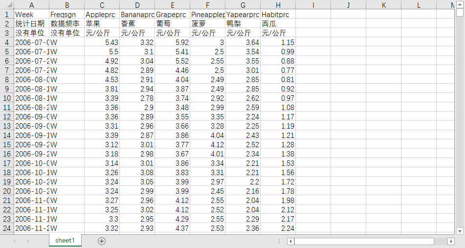 统计日期 数据频率 苹果 香蕉 葡萄 菠萝 鸭梨 西瓜