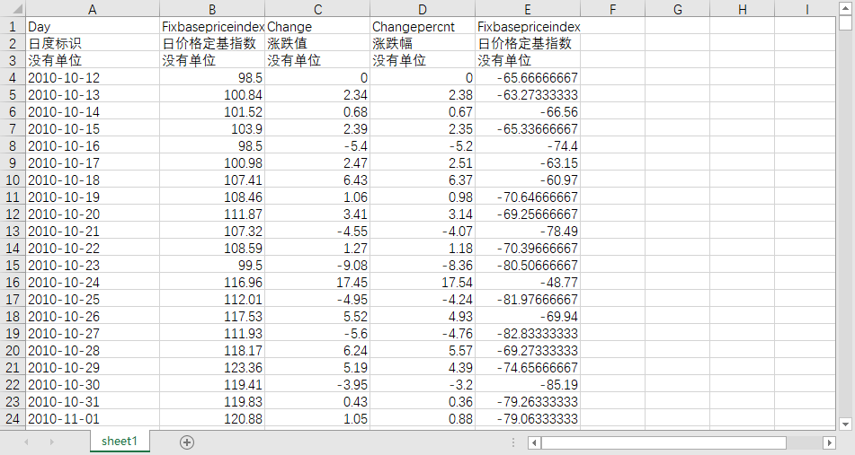 日度标识 日价格定基指数 涨跌值 涨跌幅