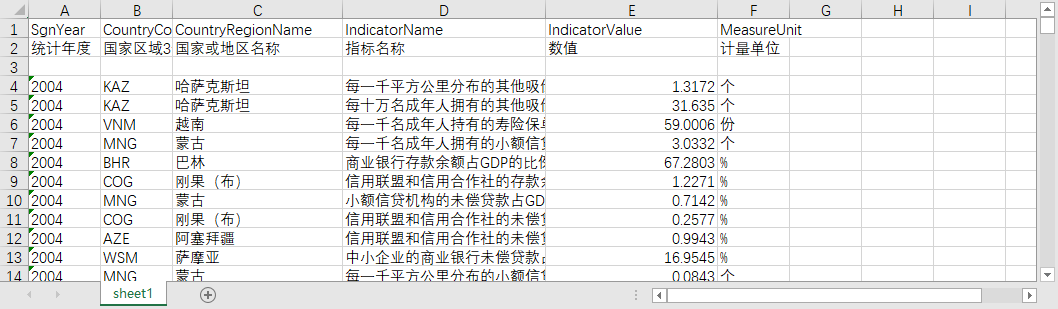 | 统计年度 | 国家区域3位英文代码 | 国家或地区名称 | 指标名称 | 数值 | 计量单位 |