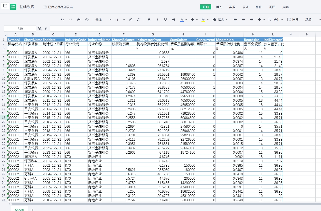 一、数据介绍数据名称:上市公司治理水平+dofile