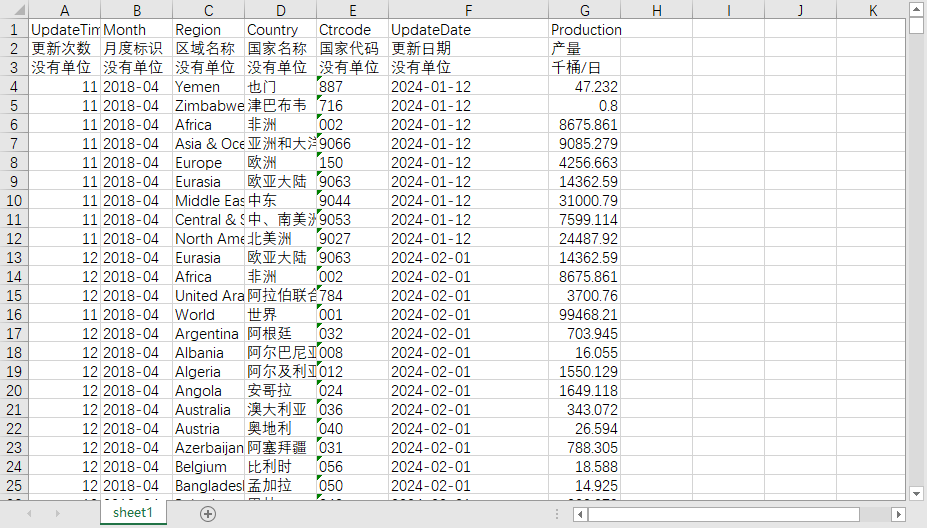 更新次数 月度标识 区域名称 国家名称 国家代码 更新日期 产量