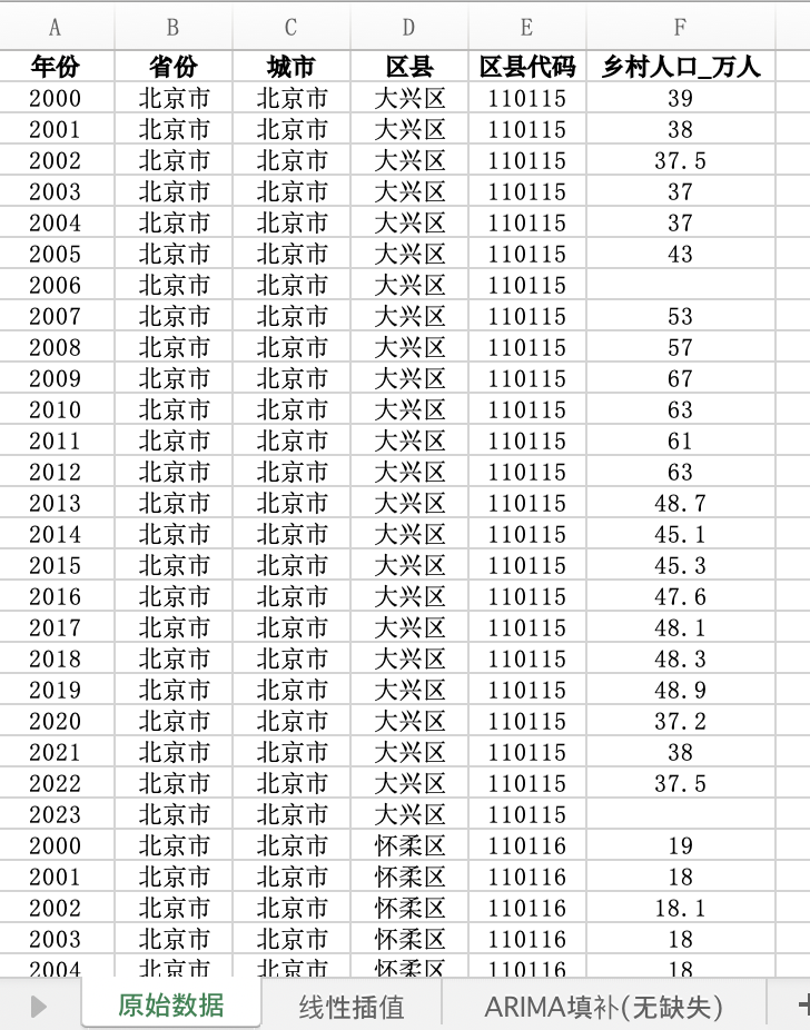 年份 | 省份 | 城市 | 区县 | 区县代码 | 乡村人口_万人