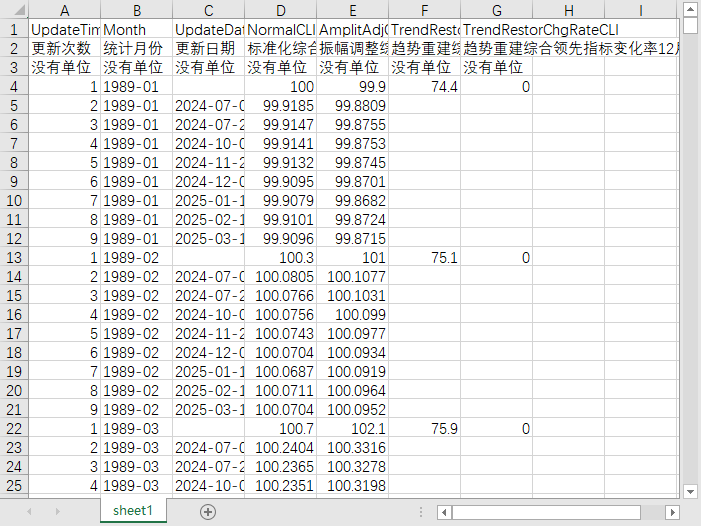 更新次数 统计月份 更新日期 标准化综合领先指标 振幅调整综合领先指标 趋势重建综合领先指标 趋势重建综合领先指标变化率12月移动平均值
