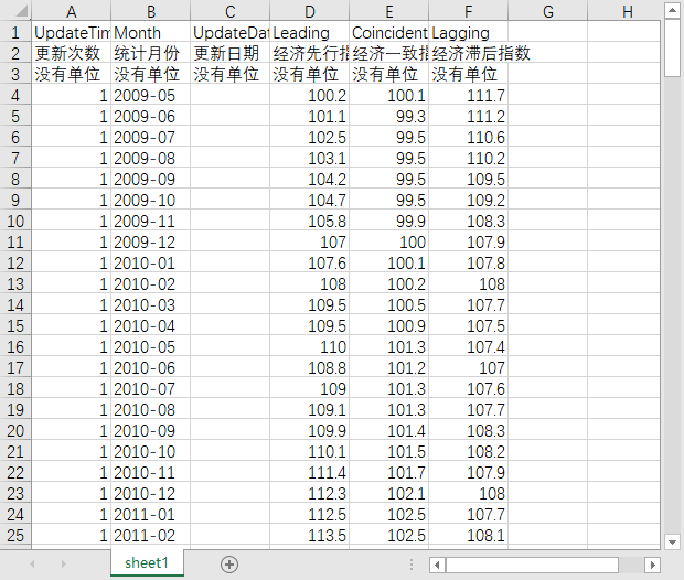 更新次数 统计月份 更新日期 经济先行指数 经济一致指数 经济滞后指数