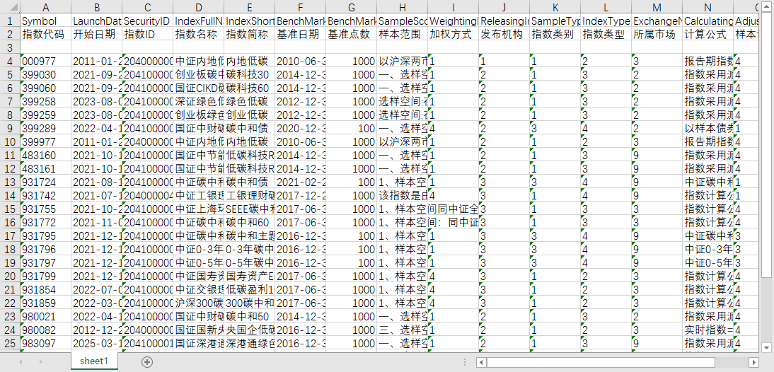 指数代码 开始日期 指数ID 指数名称 指数简称 基准日期 基准点数 样本范围 加权方式 发布机构 指数类别 指数类型 所属市场 计算公式 样本调整周期 停用日期