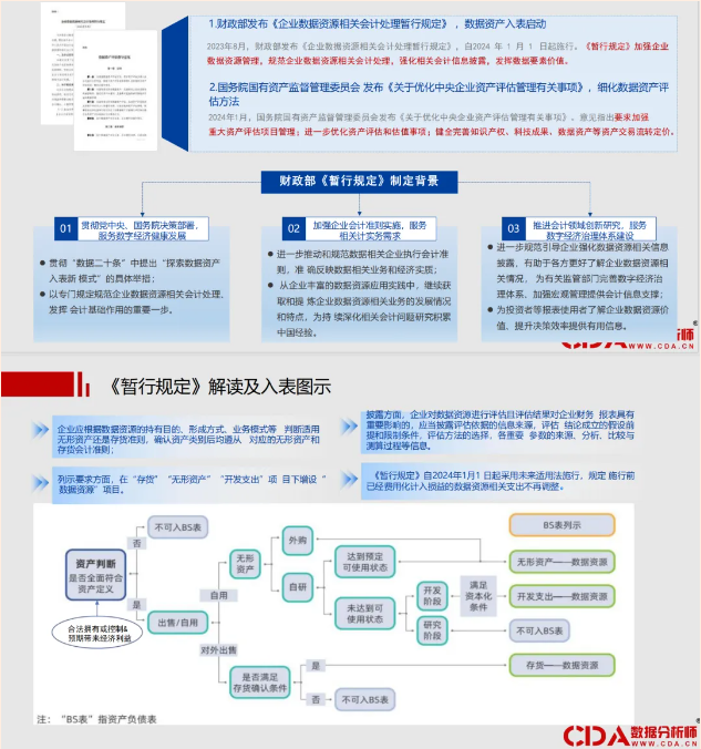 数字经济时代,数据已成为企业的核心资产。2024年1月1日起,财政部《企业数据资源相关会计处理暂行规定》正式施行,标志着数据资产“入表”进入实操阶段。这一政策不仅改变了企业的财务报表,更开启了数据要素市场化流通的新篇章。从理解“数据资产入表背景”,“数据资产入表流程及路径”,“数据资产入表成功案例”,我们距离用数据驱动决策又近了一步。