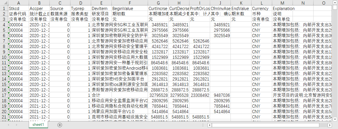 证券代码 统计截止日期 数据来源 报表类型 研发项目 期初数 本期增加数 本期减少数 其中:计入当期损益 其中:确认为无形资产 期末数 币种 说明