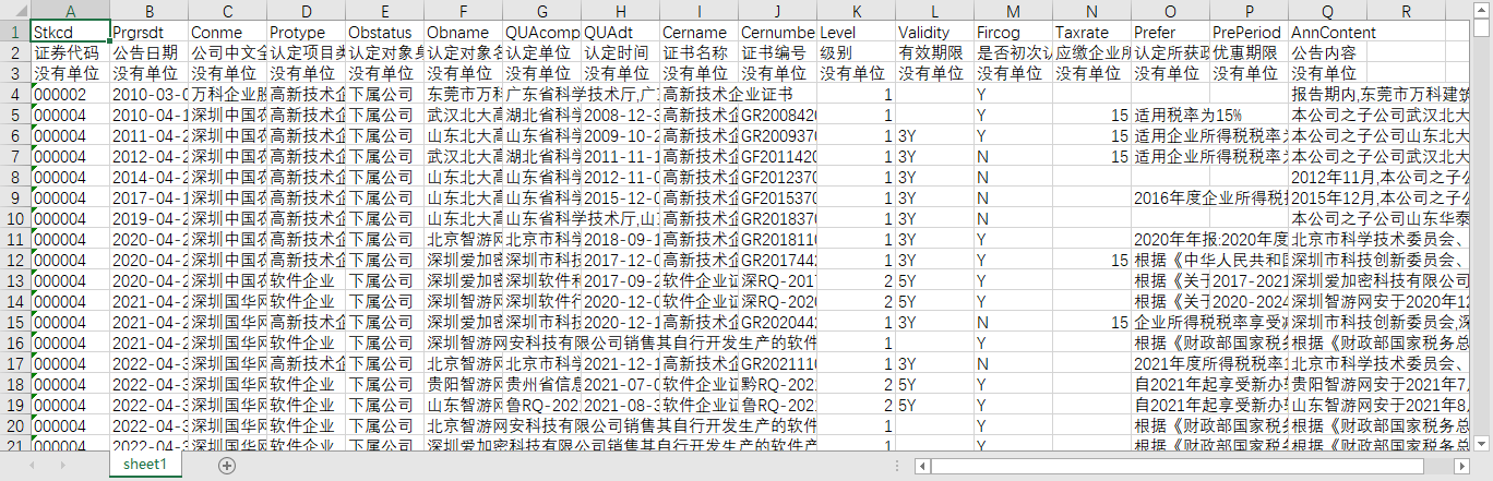证券代码 公告日期 公司中文全称 认定项目类型 认定对象身份 认定对象名称 认定单位 认定时间 证书名称 证书编号 级别 有效期限 是否初次认定 应缴企业所得税税率(%) 认定所获政府优惠 优惠期限 公告内容
