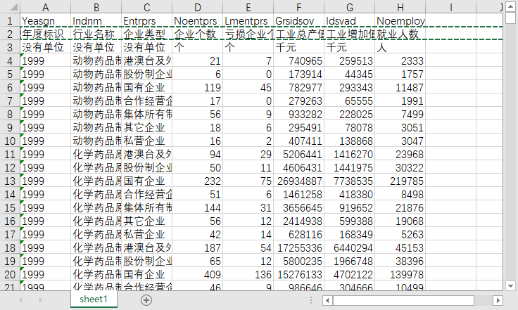 | 年度标识 | 行业名称 | 企业类型 | 企业个数 | 亏损企业个数 | 工业总产值 | 工业增加值 | 就业人数 |