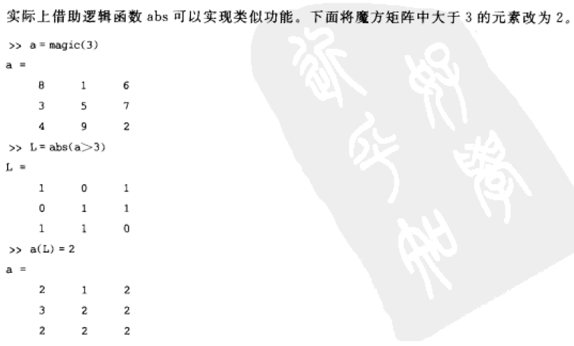 同上面的,命令形式为a(find(a > 3)) = 2,不过这样的话就不能体现逻辑函数