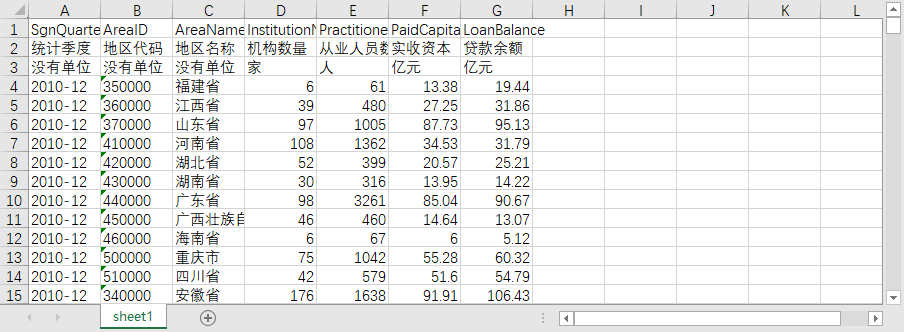 统计季度 地区代码 地区名称 机构数量 从业人员数 实收资本 贷款余额
