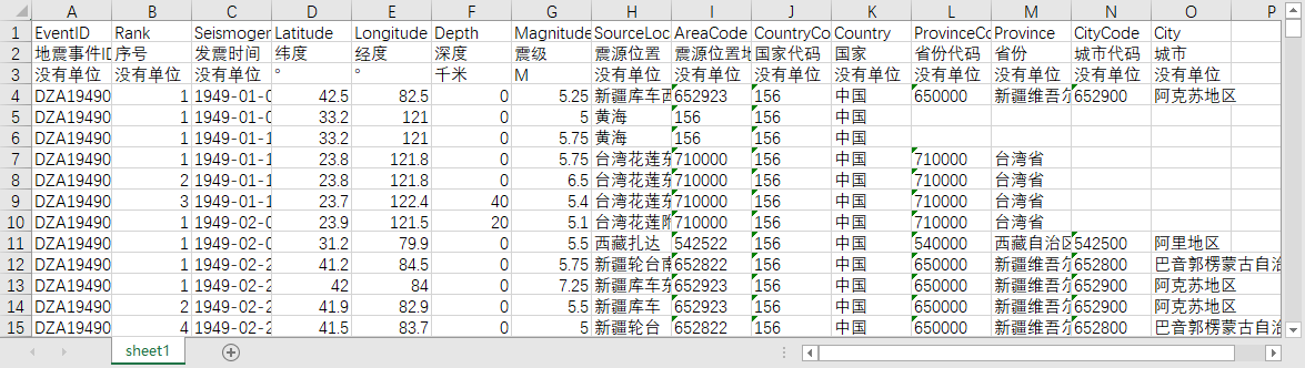 中国全国各地区地震事件表1949-20250416纬度经度深度震级震源位置所在国家省份城市