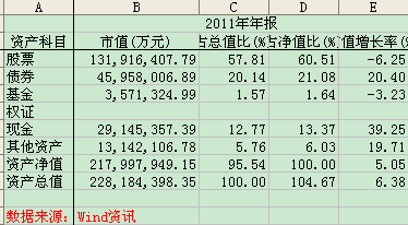 中国基金的资产配置情况2003-2011,资料来源:Wind。