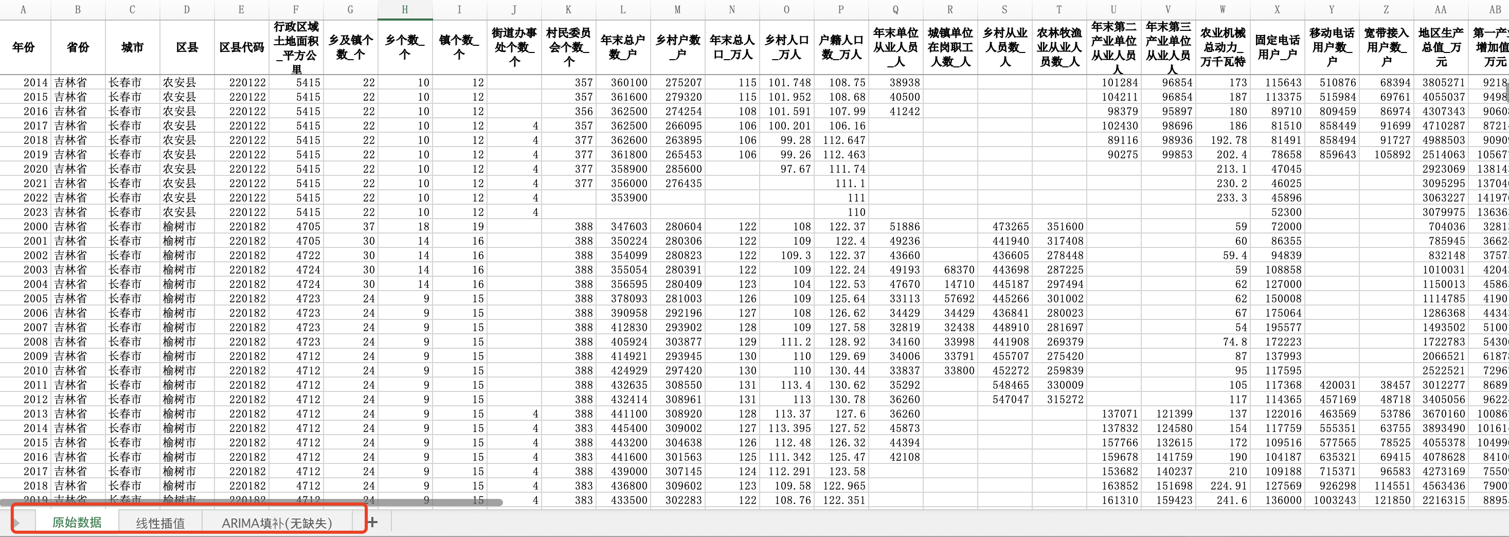 吉林省县域经济社会数据吉林省县域统计年鉴面板数据2000-2023年(插值无缺失版)