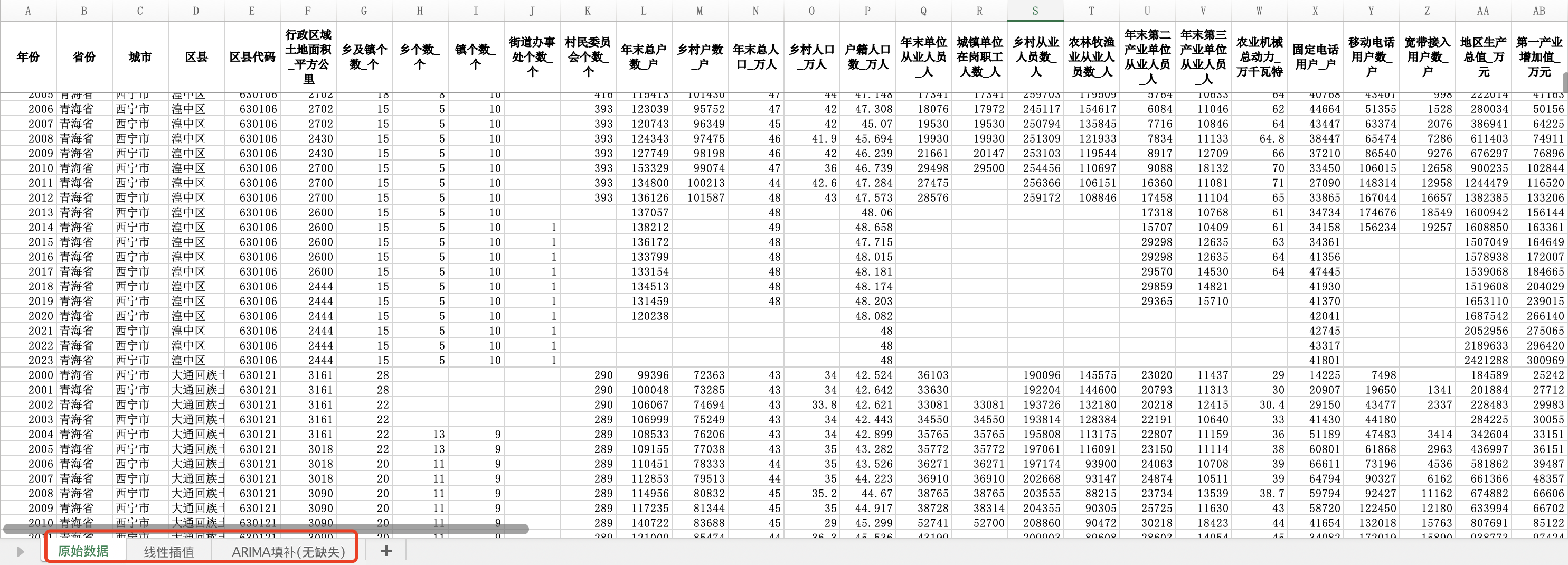 青海省县域经济社会数据青海省县域统计年鉴面板数据2000-2023年(插值无缺失版)