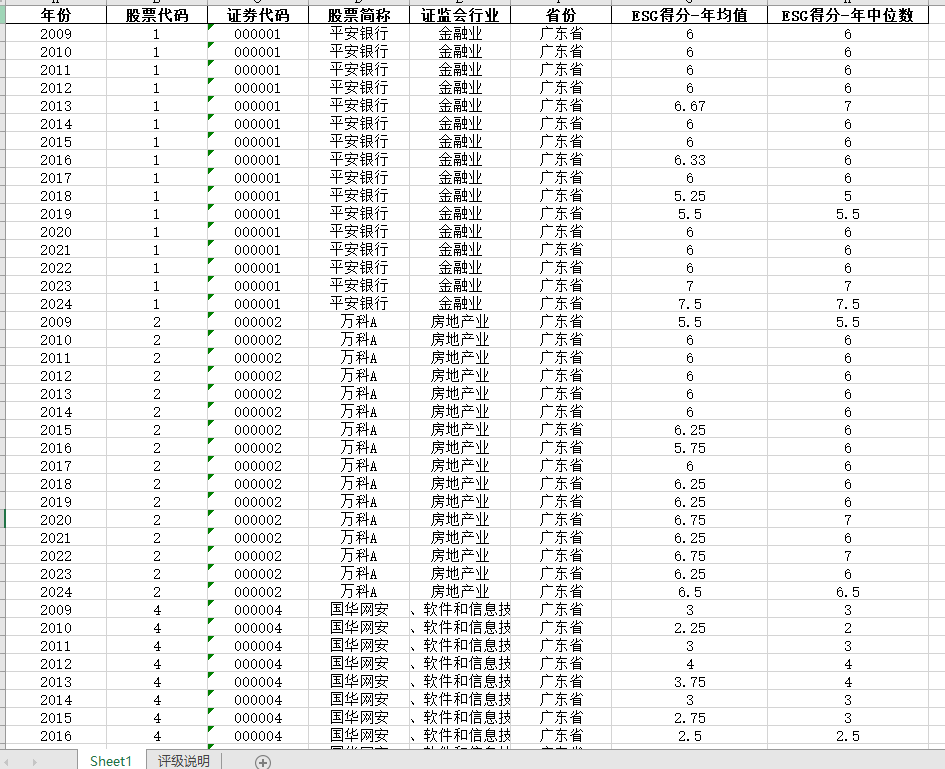 2009-2024年华证ESG得分年均值ESG得分年中位数面板数据(2025更新)