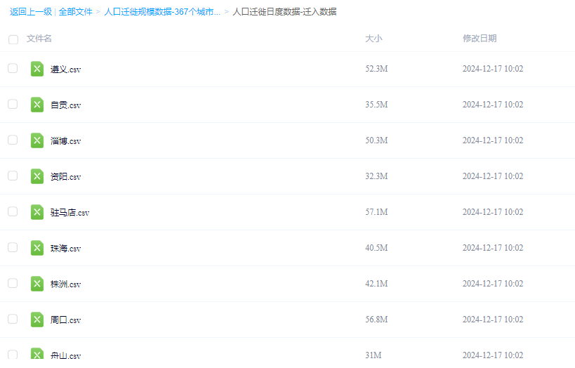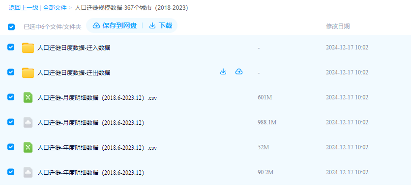 全国367个地市州地级市城市人口迁移规模数据2018-2023迁徙迁入迁出始发终点城市所属省份