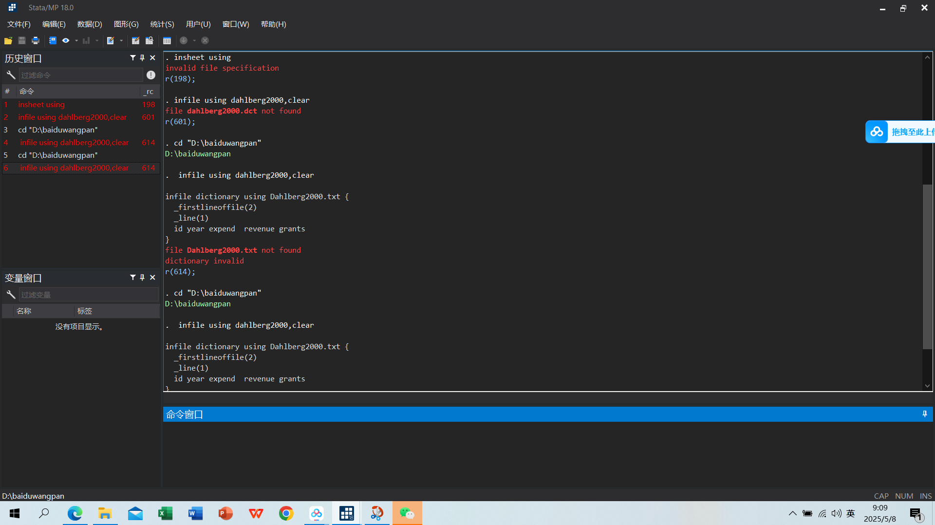 为什么更改过工作目录之后,显示not found(需要打开的文件是do-file和dictionary)