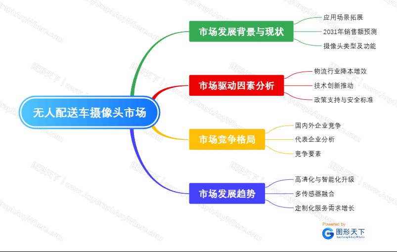 在数字化、智能化浪潮席卷全球的当下,无人配送车凭借高效、便捷、低成本等优势,逐渐成为物流配送领域的新宠。而摄像头作为无人配送车的 “眼睛”,是其实现环境感知、路径规划与安全运行的核心组件。本无人配送车摄像头市场报告将深入剖析该市场的发展现状、驱动因素、竞争格局、发展趋势,并为行业参与者提供实用建议,助力把握市场机遇,洞察行业发展方向。