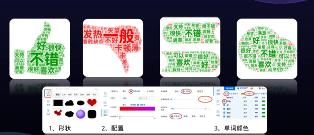 上传后,工具会自动识别并处理数据,可以生成正面词云图、负面词云图以及包含正面和负面词汇的整体词云图,从图中可以直观地了解整体的情感倾向。