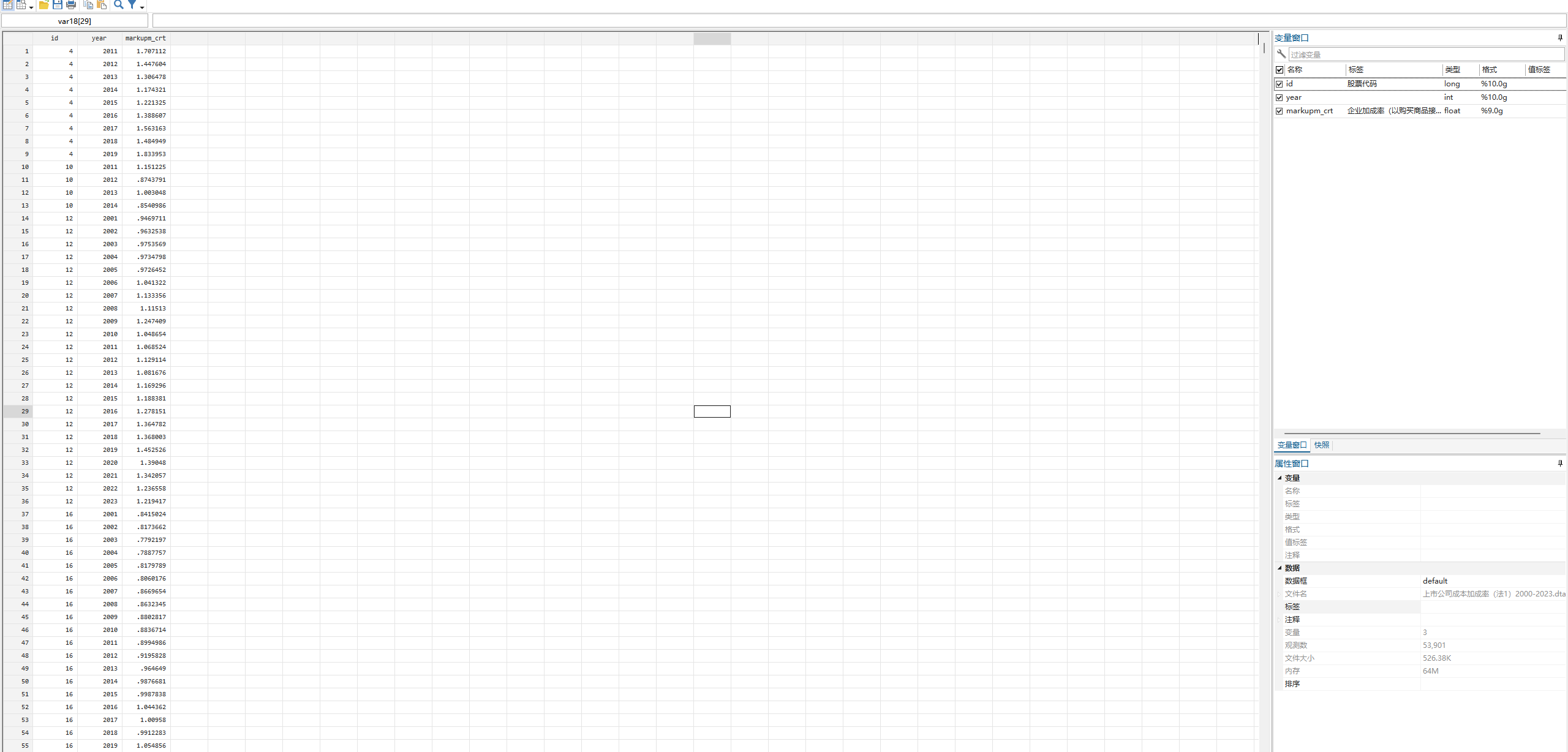 工企ID、年份、markupm_crt