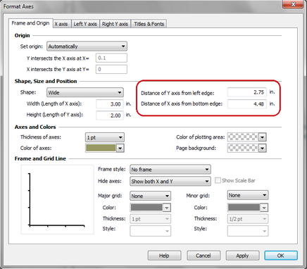 使用此对话框来设置图表的原点。并格式化坐标轴或周围框架的颜色和形状。