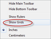右键点击Prism工具栏的任意位置并选择“显示网格”,或点击“视图”菜单并选择“显示网格”。这些网格不会显示在打印输出或导出的图像中。