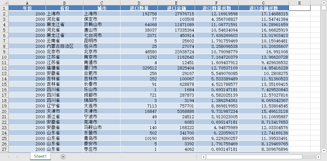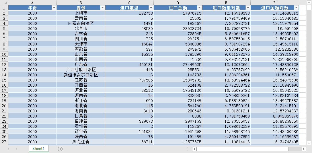 年份 省份 进口数量 进口金额 进口数量对数 进口金额对数