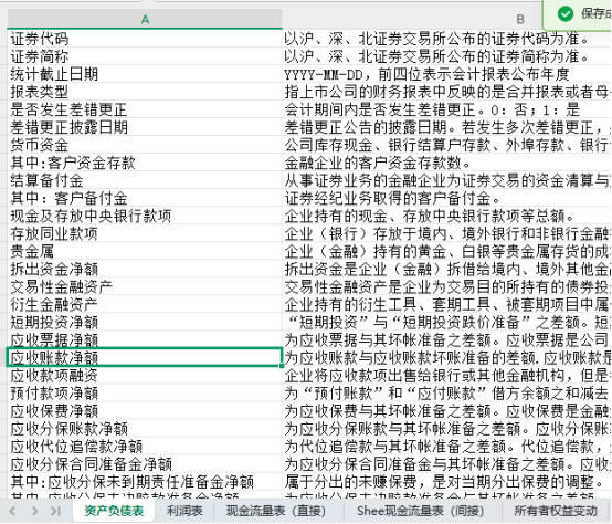 包含四大报表数据(资产负债表、利润表、现金流量表、所有者权益变动表)
