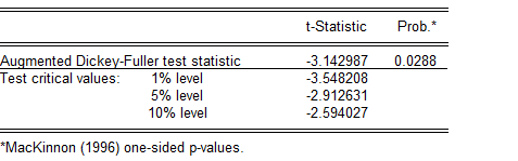 nuomin 发表于 2012-6-26 21:53 就这个检验来看,只能说在5%的显著水平下不能拒绝原假设。对于是否平稳,ADF检验有一套检验方法。需要按照步 ...