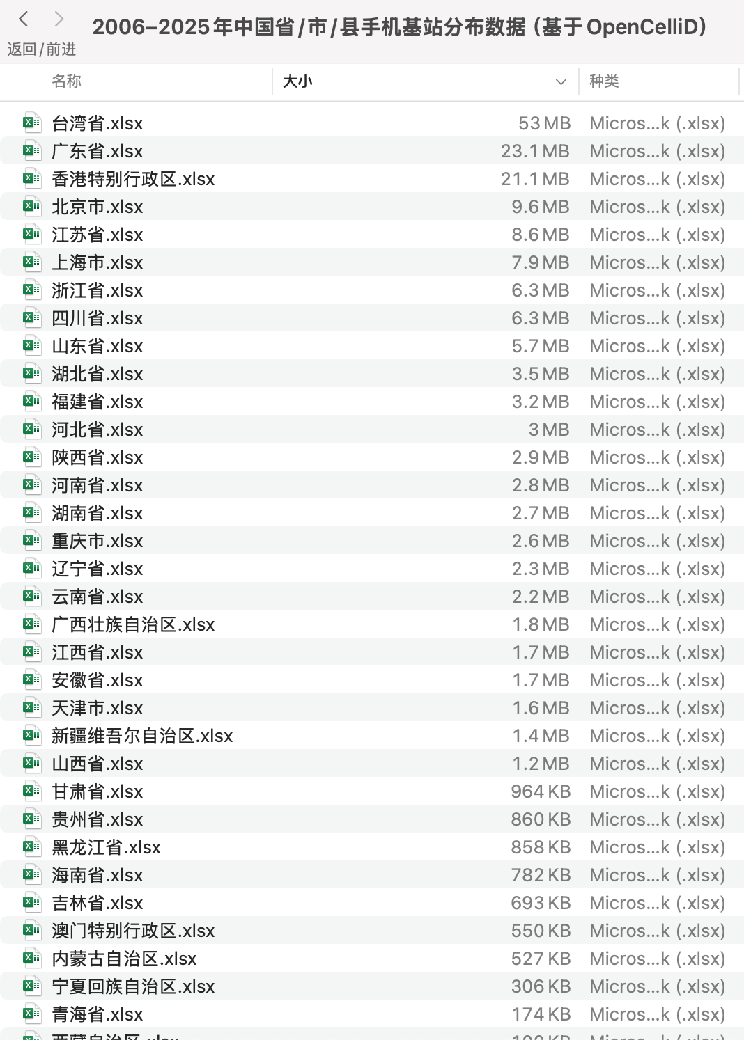 2006-2025年中国省市县级手机基站分布与信号强度数据(基于OpenCelliD定位含经纬度Excel)