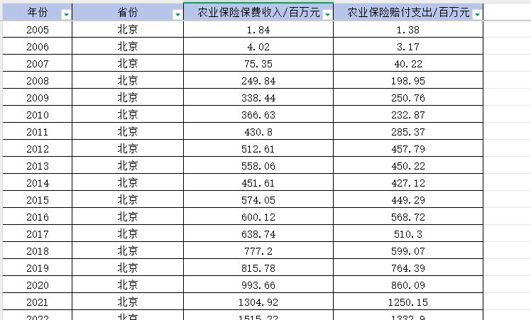 31省农业保险保费收入/农业保险赔付支出数据,2001-2023,整理好的面板数据,excel版本