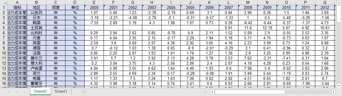 经合组织各国G7欧盟欧元区地区OECD单位劳动力成本增速(季节调整SA) 2000-2023