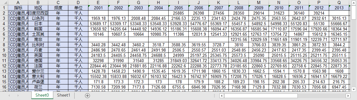 经合组织各国G7G20欧盟欧元区地区OECD雇员人数 2001-2024就业人数从业人员