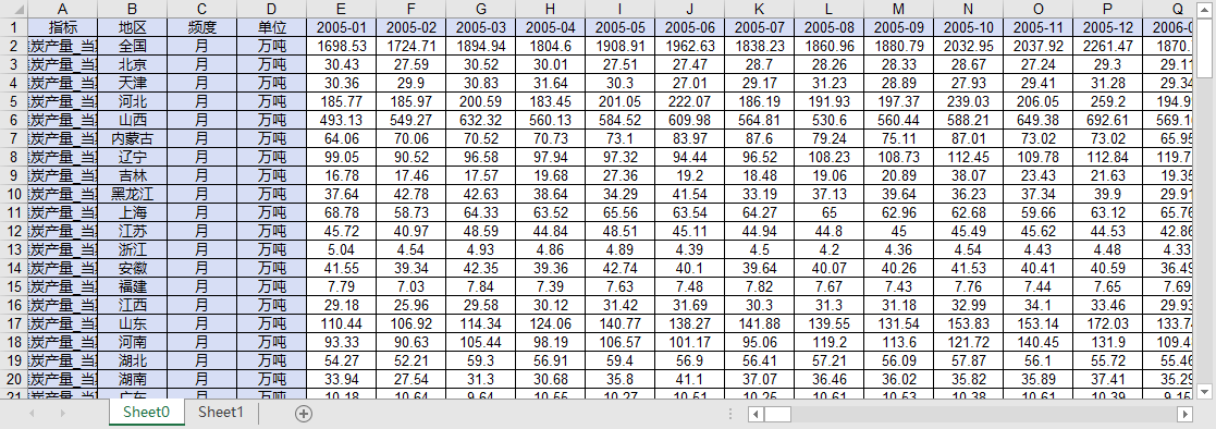 全国分省份能源生产原煤、焦炭、煤层气、煤气产量当期累计同比增速2012-202503月度增长率数据