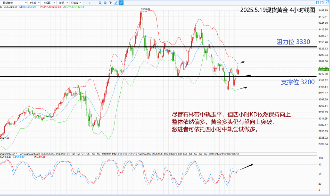 解说:现货黄金:激进者偏多操作,多单参考价位3220-3230,止损位3200,获利目标3330附近/以上。