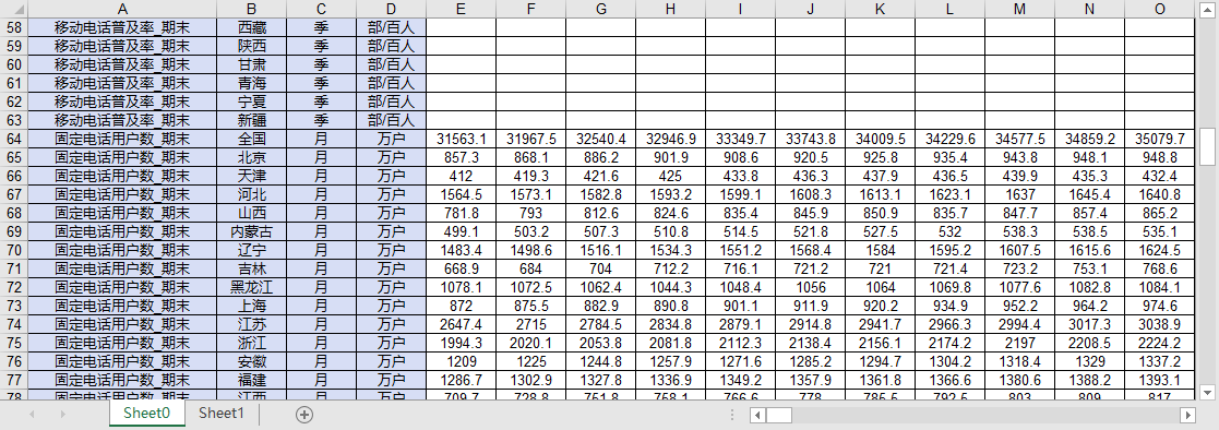 全国分省份农村城镇固定移动电话用户数普及率期末2005-202503月度数据