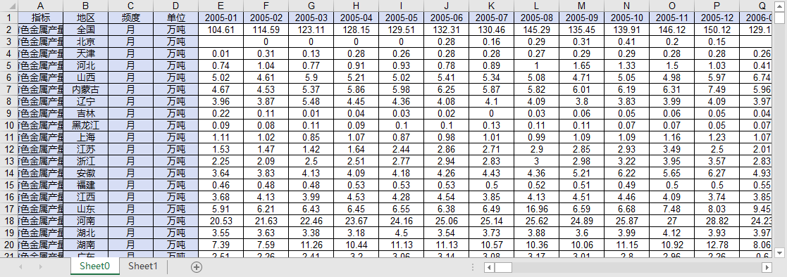 全国分省份十种有色金属冶炼及压延氧化铝材铜材产量当期累计同比增速2005-202503月度增长率数据