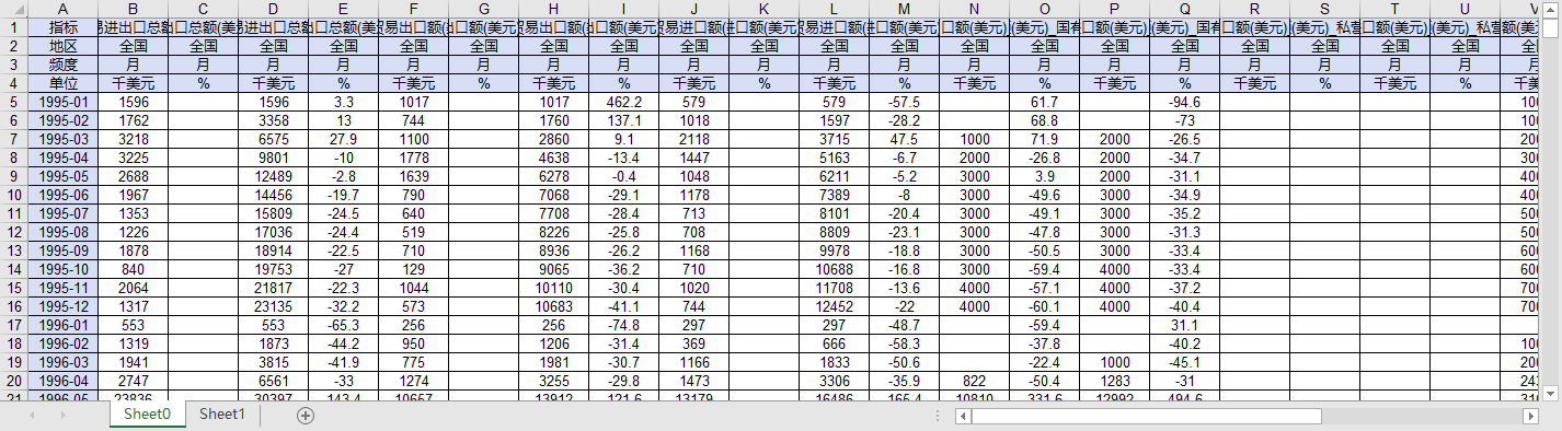 指标 出料加工贸易进出口总额(美元)_当期 出料加工贸易进出口总额(美元)_当期同比增速 出料加工贸易进出口总额(美元)_累计 出料加工贸易进出口总额(美元)_累计同比增速 出料加工贸易出口额(美元)_当期 出料加工贸易出口额(美元)_当期同比增速 出料加工贸易出口额(美元)_累计 出料加工贸易出口额(美元)_累计同比增速 出料加工贸易进口额(美元)_当期 出料加工贸易进口额(美元)_当期同比增速 出料加工贸易进口额(美元)_累计 出料加工贸易进口额(美元)_累计同比增速 出料加工贸易出口额(美元)_国有企业_累计 出料加工贸易出口额(美元)_国有企业_累计同比增速 出料加工贸易进口额(美元)_国有企业_累计 出料加工贸易进口额(美元)_国有企业_累计同比增速 出料加工贸易出口额(美元)_私营企业_累计 出料加工贸易出口额(美元)_私营企业_累计同比增速 出料加工贸易进口额(美元)_私营企业_累计 出料加工贸易进口额(美元)_私营企业_累计同比增速 出料加工贸易出口额(美元)_外商投资企业_累计 出料加工贸易出口额(美元)_外商投资企业_累计同比增速 出料加工贸易进口额(美元)_外商投资企业_累计 出料加工贸易进口额(美元)_外商投资企业_累计同比增速 出料加工贸易出口额(美元)_中外合资经营企业_累计 出料加工贸易出口额(美元)_中外合资经营企业_累计同比增速 出料加工贸易进口额(美元)_中外合资经营企业_累计 出料加工贸易进口额(美元)_中外合资经营企业_累计同比增速 出料加工贸易出口额(美元)_外资(独资)企业_累计 出料加工贸易出口额(美元)_外资(独资)企业_累计同比增速 出料加工贸易进口额(美元)_外资(独资)企业_累计 出料加工贸易进口额(美元)_外资(独资)企业_累计同比增速