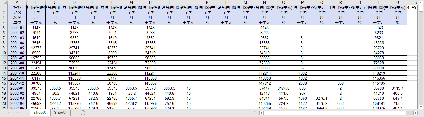 指标 海关特殊监管区域进口设备进出口总额(美元)_当期 海关特殊监管区域进口设备进出口总额(美元)_当期同比增速 海关特殊监管区域进口设备进出口总额(美元)_累计 海关特殊监管区域进口设备进出口总额(美元)_累计同比增速 海关特殊监管区域进口设备进口额(美元)_当期 海关特殊监管区域进口设备进口额(美元)_当期同比增速 海关特殊监管区域进口设备进口额(美元)_累计 海关特殊监管区域进口设备进口额(美元)_累计同比增速 海关特殊监管区域进口设备进口额(美元)_国有企业_累计 海关特殊监管区域进口设备进口额(美元)_国有企业_累计同比增速 海关特殊监管区域进口设备进口额(美元)_私营企业_累计 海关特殊监管区域进口设备进口额(美元)_私营企业_累计同比增速 海关特殊监管区域进口设备进口额(美元)_外商投资企业_累计 海关特殊监管区域进口设备进口额(美元)_外商投资企业_累计同比增速 海关特殊监管区域进口设备进口额(美元)_中外合资经营企业_累计 海关特殊监管区域进口设备进口额(美元)_中外合资经营企业_累计同比增速 海关特殊监管区域进口设备进口额(美元)_中外合作经营企业_累计 海关特殊监管区域进口设备进口额(美元)_中外合作经营企业_累计同比增速 海关特殊监管区域进口设备进口额(美元)_外资(独资)企业_累计 海关特殊监管区域进口设备进口额(美元)_外资(独资)企业_累计同比增速