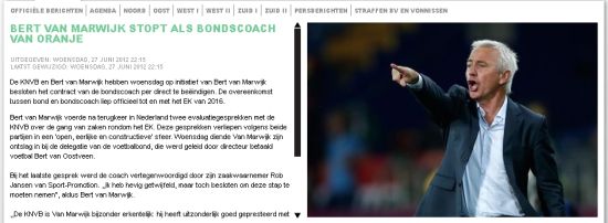 北京时间6月28日凌晨,荷兰足协通过官方网站全讯网正式向外界宣布,主教练范马尔维克辞去了荷兰国家队主帅一职。荷兰足协在官方网站中写道:“这在荷兰足协和范马尔维克双方协商之后做出的决定,并且立即生效。原本范马尔维克的那一份2016年才到期的合同已经被正式废除。”