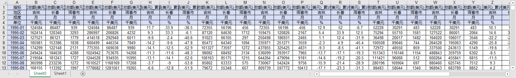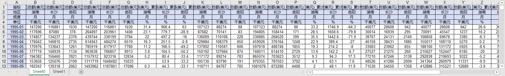 指标 进出口总额(美元)_当期 进出口总额(美元)_当期 进出口总额(美元)_当期 进出口总额(美元)_累计 进出口总额(美元)_累计 进出口总额(美元)_累计 进出口总额(美元)_累计同比增速 进出口总额(美元)_累计同比增速 进出口总额(美元)_累计同比增速 出口总额(美元)_当期 出口总额(美元)_当期 出口总额(美元)_当期 出口总额(美元)_累计 出口总额(美元)_累计 出口总额(美元)_累计 出口总额(美元)_累计同比增速 出口总额(美元)_累计同比增速 出口总额(美元)_累计同比增速 进口总额(美元)_当期 进口总额(美元)_当期 进口总额(美元)_当期 进口总额(美元)_累计 进口总额(美元)_累计 进口总额(美元)_累计 进口总额(美元)_累计同比增速 进口总额(美元)_累计同比增速 进口总额(美元)_累计同比增速 出口额(美元)_外商投资企业_当期 出口额(美元)_外商投资企业_累计 出口额(美元)_外商投资企业_累计同比增速 进口额(美元)_外商投资企业_当期 进口额(美元)_外商投资企业_累计 进口额(美元)_外商投资企业_累计同比增速 进出口总额(美元)_外商投资企业_当期 进出口总额(美元)_外商投资企业_累计 进出口总额(美元)_外商投资企业_累计同比增速