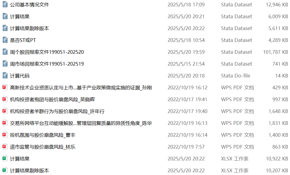 公司股价崩盘风险可基于季度或年度指标计量。其中,季度崩盘风险多用于投资者行为视角的研究,而年度崩盘风险则更适用于时间跨度较长的面板数据研究