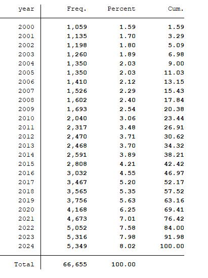 经管之家:momingiqmiao7 欢迎关注,分享更多实用的数据,独家发布,严禁转载获利,转载必究,有任何问题在可以帖子下方回复,及时回复 批量购买可享优惠 【关注】【帖子索引2023年】【帖子索引2022年】【帖子索引2021年】【使用常见问题】【点击查看更多帖子】【Stata软件下载】【Stata免费学习资料】