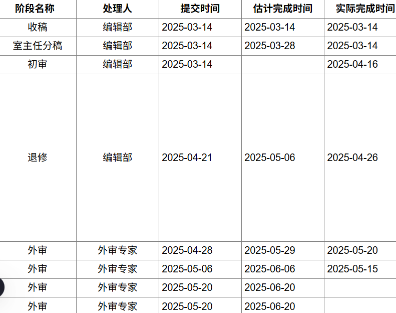 如题,看其他人分享的经验,两个外审专家审完后一般要么退修要么退稿。我的情况是同期两个外审专家审完后,直接又送了两个外审。排除第一轮中出现拒审的情况,这种情况下系统会直接删除该行外审专家记录(图中我的第一轮两个外审送审时间不一致,就是遇到了这种情况)。也看到网上有说如果两个外审意见分歧大,期刊就会找第三个专家的情况,但我这直接又搞了两个,是分歧太大了吗?(如果两个都拒还会送审么?)本人硕士生(一作+通讯)还没发过正C,明年研三想申博,实在是太想有篇正C了.....恳请有经验的大佬能帮忙分析下,感谢!