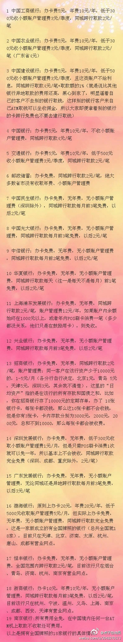 【各种银行卡收费情况】你需要知道的生活小常识!