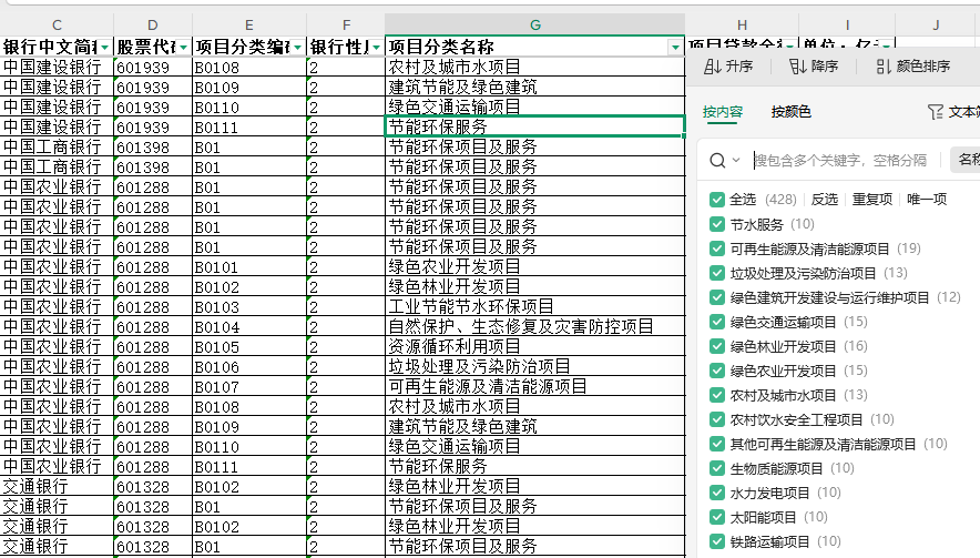 A股绿色信贷数据42家银行