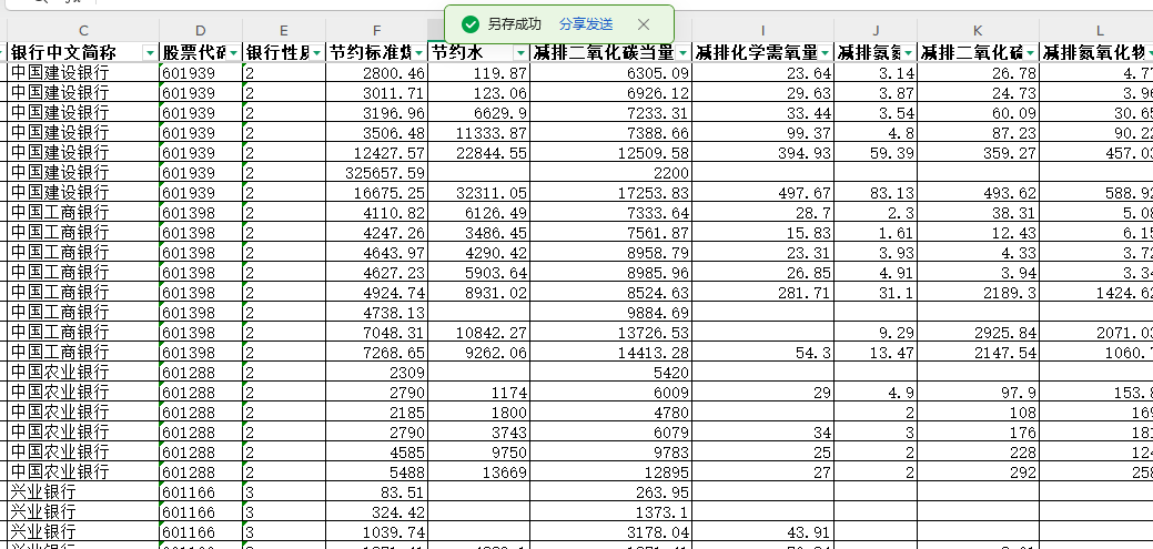 2008-2023年国内20余家银行绿色信贷项目产生的环境效果数据