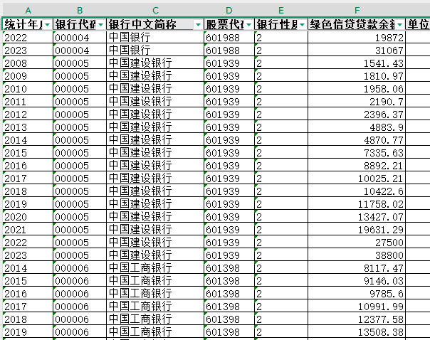 2008-2023年国内20余家银行绿色信贷贷款金额数据