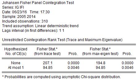 zfan1988 发表于 2012-7-7 12:30 输出结果显示有两个协整方程,但是检验结果把at most 1 假设拒绝了,是不是有些矛盾